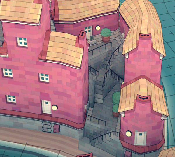 ②确保房屋颜色不同。如果使用相同的颜色,缺口上方的房子底部会出现脚手架。