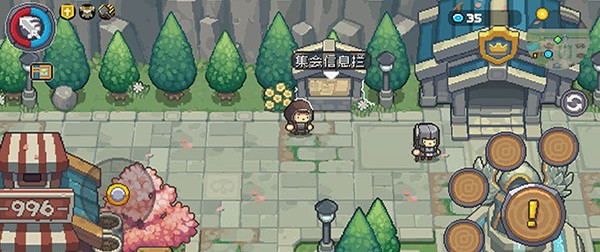 1、进入游戏后,玩家来到秋梨村的骑士团公会左侧,与集会信息栏互动。