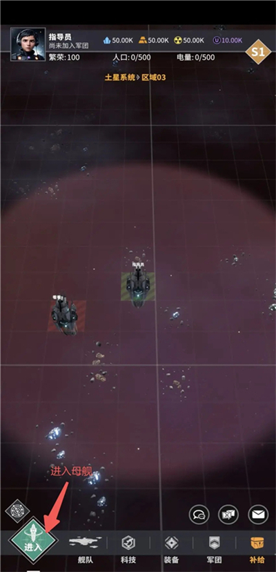 进入赛季地图后,即可看到您的母舰停泊在屏幕的中央,首先我们进入母舰,创建我们的第一个舰队
