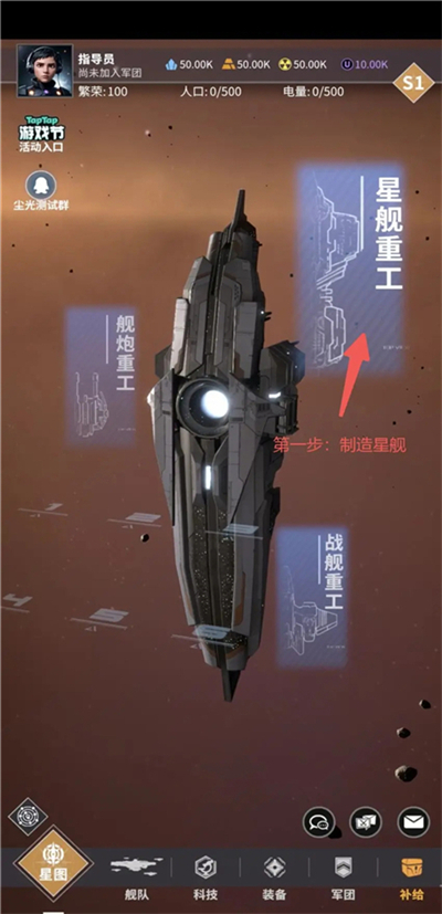 玩《星舰纪元》首先第一步当然是制造星舰啦,点击星舰重工,进入制造界面