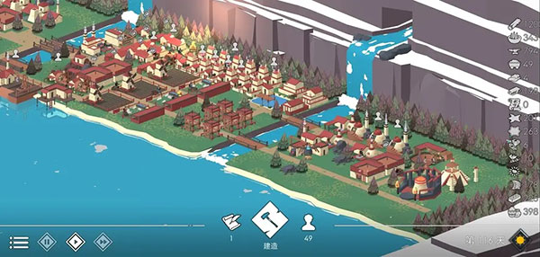 2、开局篝火可以考虑放在最上面树林旁边,前期房子不够的时候秒进林子,基本不会死人,满人口60,建筑之间最好修条路,不然偶尔会卡bug。