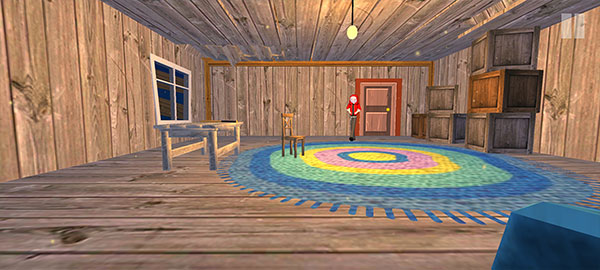 7、开始探索房间,发现楼顶的木板是碎的,可以利用背后的木箱子爬上去。
