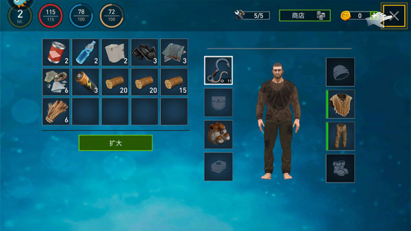 2、玩家可以升级他们的木筏来收集逃生材料并建立自己的防御,制作防御武器保护自己;