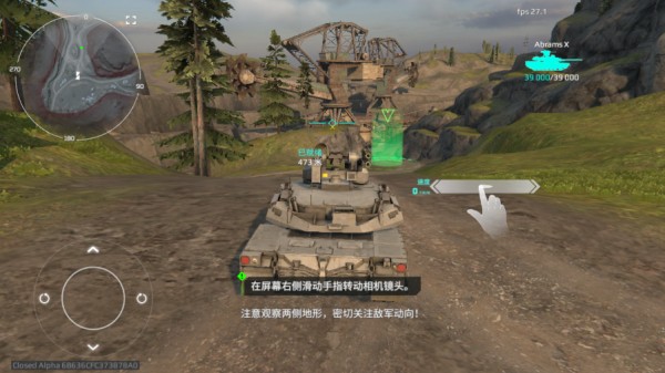 2、然后在屏幕右侧滑动手指可以转动相机镜头。注意观察两侧地形,密切关注敌军动向。