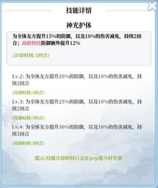 特技·神光护体并不是一个护盾技能,而是一个防御增益技能,对于后期闯关来说有点力不从心,需要配合另外的防御职业配合使用才可以发挥出娉婷的最大功能。