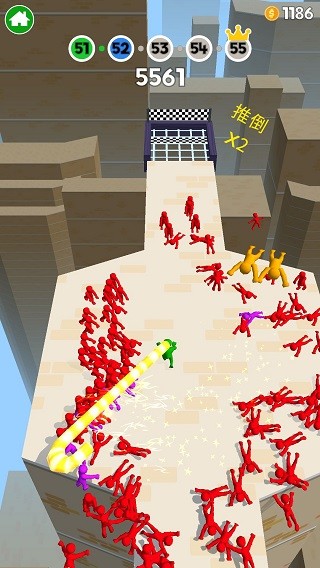 1、向着关卡终点的奋进,用你的棍子推开路上的全部敌人。