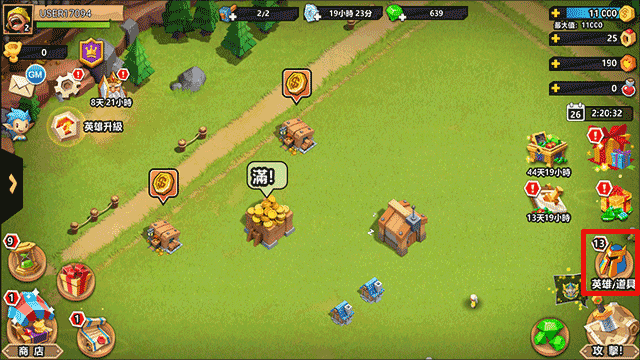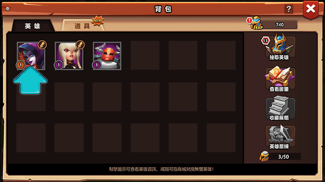 1、点击运行游戏后,在这里点击英雄道具按钮进入背包界面;