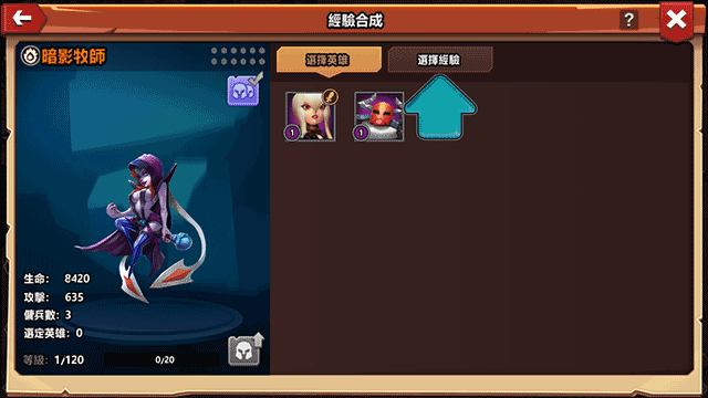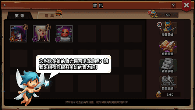 2、在背包界面,玩家就可以对自己的英雄进行升级了;