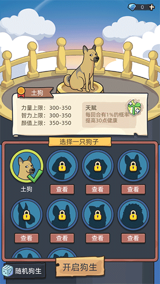 1、下载打开游戏后选择自己喜欢的狗开启你的狗生。