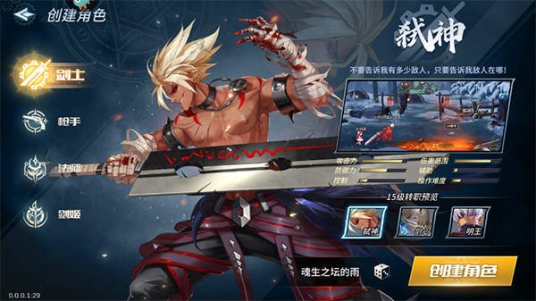 选择任意一种角色进行创建,新手用户可以选择剑士、枪手、法师等角色