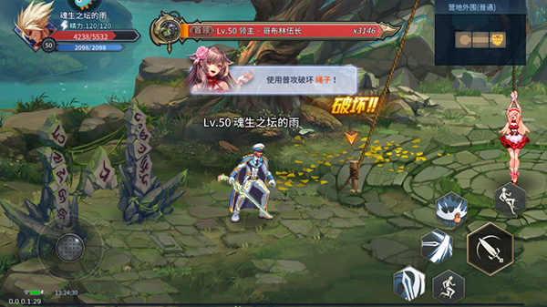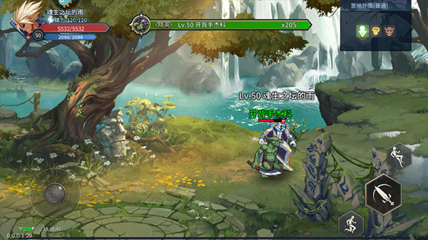 位置移动时右下角区域会出现动作按钮,用户点击其中一个可以进行跳跃、攻击等基本操作