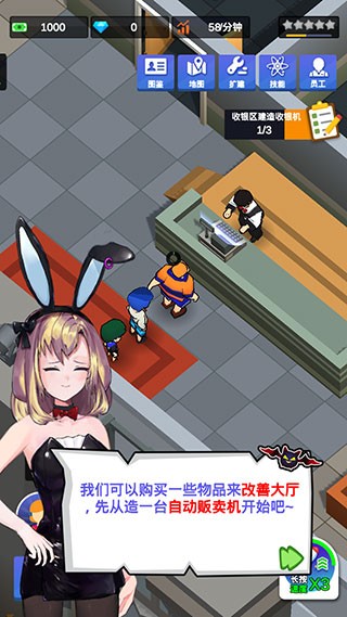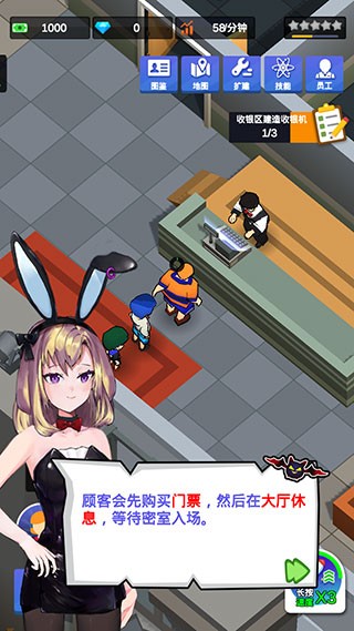 1、我们进入密室逃脱模拟器这款游戏之后会接手一家小小密室,并迎来我们的第一波客人。