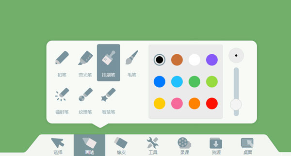 7、笔刷功能,在这里可以找到你需要的笔刷,支持铅笔、荧光笔、排刷笔、毛笔、镭射笔、纹理笔、智慧笔;
