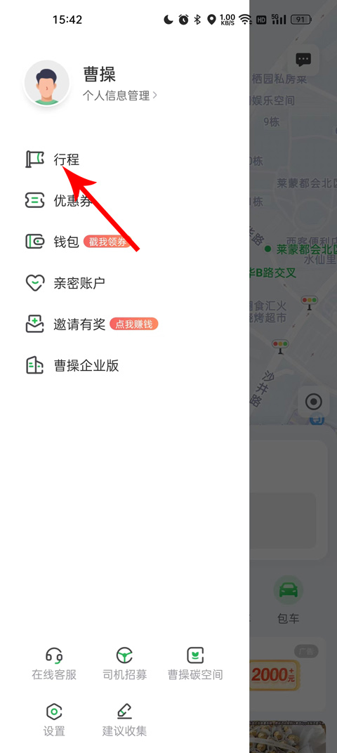 4、进入到行程管理页面之后,右上角有一个开发票的端口,点击进入;