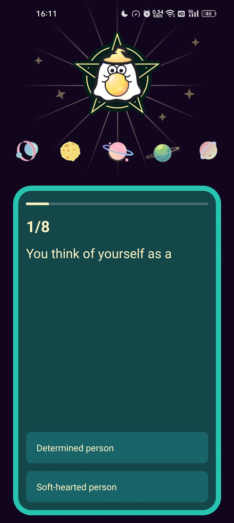 1、灵魂自测游戏,无需填写任何资料,仅回答几个问题就可以找到内心契合的陌生人。