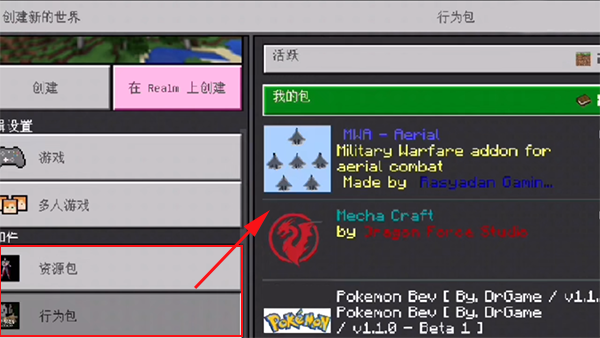 6、接下来返回游戏创建世界,在“资源包”中即可选择刚才下载到的mod模组了!