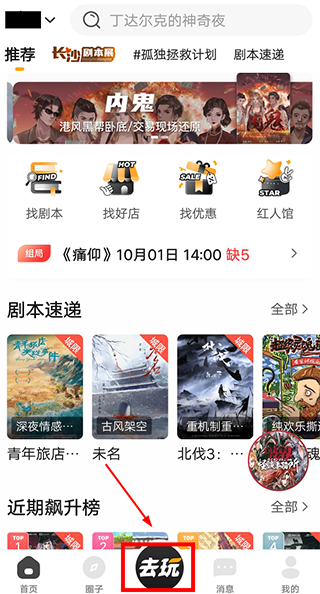 5、如果不愿意组局,也可以选择【同城组局】页面内,参与其他人发起的剧本杀组局。