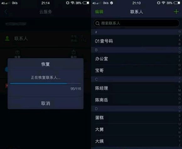 2、联系人的丢失,您需要打开联系人同步开关才能使用云服务联系人同步,打开联系人同步开关后,如果误删了联系人,可以在云服务的回收站中找回。