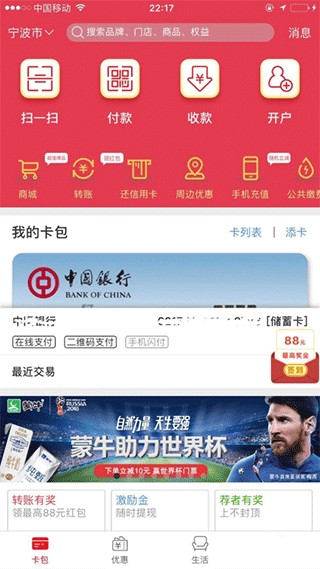 3、钱包瘦身:手机与银行卡合二为一,代替实体银行卡享受一拍(手机)即付的快速支付体验。