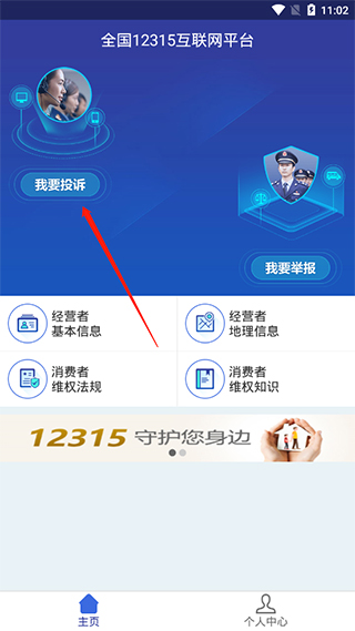 1、打开软件,在首页选择我要投诉进入诉讼详情,点击我要投诉即可。