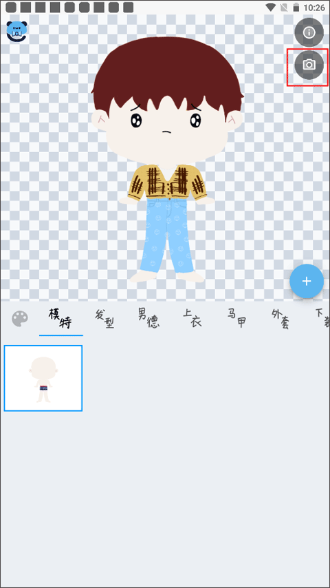 点击右上角的相机图标来进行快速生成您捏的图片,右键或是长按来保存该图片。