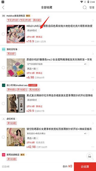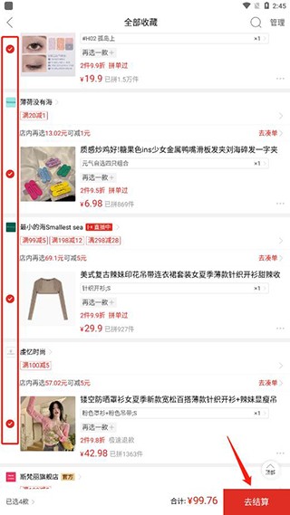 4、然后勾选需要购买的商品,点击去结算就能一起付款啦!