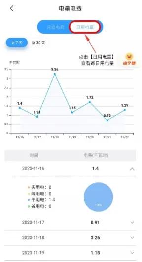 3、点击日用电量就可以查看到每天的实时电量了。