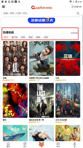 1、首先下载好本站带来的茶杯狐cupfox官方最新版,打开首页,他会每天随时会大家推荐热播新剧