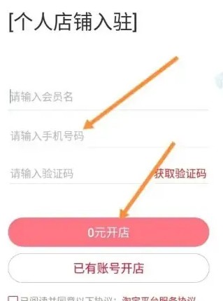 输入信息,选择【0元开店】选项点击跳转进入进行下一步操作;