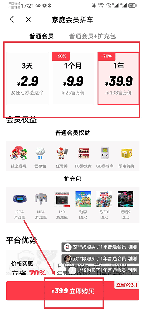 2、进入后选择你要购买哪种套餐,然后点击立即购买即可。