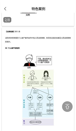 2、点击“案例”查看个人破产法学习等知识要点经典案例,加深自我学习了解。