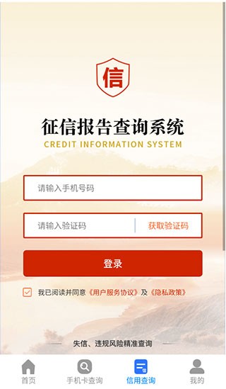 5、当然,除了查看号码,你还可以在“信用查询”内登录查看自己的征信情况。
