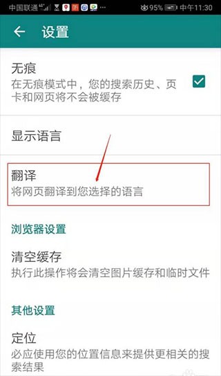 进入设置页面,点击翻译。见下图
