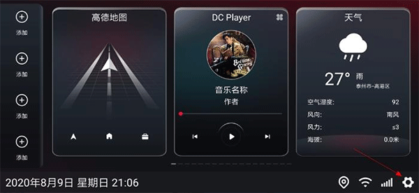2、{音乐特殊插件设置} 用以设置 播放器的快速切换 CD效果 音乐封面 音乐歌词 等等。 注: 如果音乐插件选择了 酷狗音乐,酷狗音乐车机版,网易云音乐和VIPER HIFI播放器 则需要在此配置桌面插件(1 * 4)否则桌面音乐卡片将不会显示歌曲名称和歌手信息,其他播放器则无需此设置。