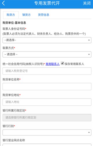 第二步:填写购货方、销货方、劳务信息等,点击【增值税专用发票代开申请】;