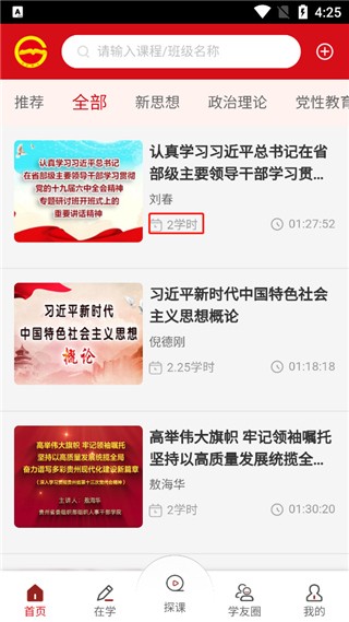 2、点击“全部”,选择所需课程,每个课程均配有相应学时;