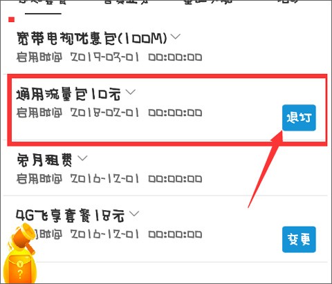 3、在已开业务页面,可以查看当前开通的套餐和增值业务,点击退订按钮即可操作退订;