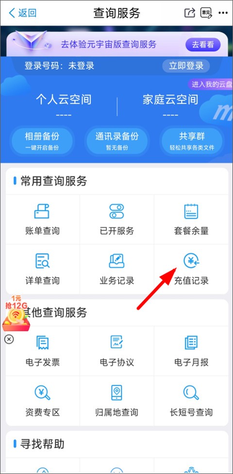2、在查询业务页面,用户可在常用查询服务中找到充值记录;