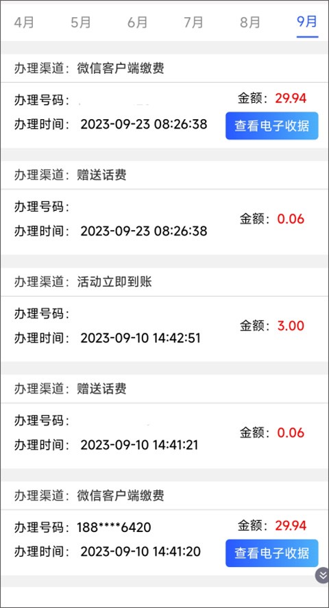 3、在充值记录页面,可以查看具体月份的充值记录和金额。