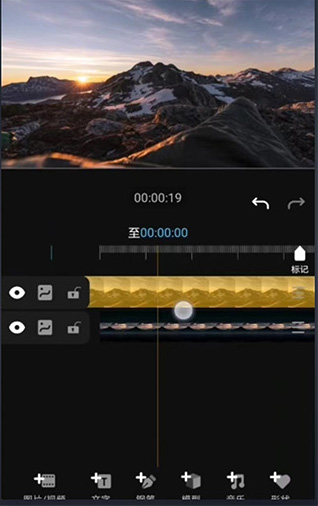 在任何剪辑或图层上轻点可选中拖动边缘可裁剪。