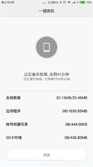 3、【方便快捷】比起传统的数据线备份恢复,小米一键换机无需数据线,两台手机直接进行数据传输,更加方便。比起从云端恢复,速度更快,最大可达6MB/s。