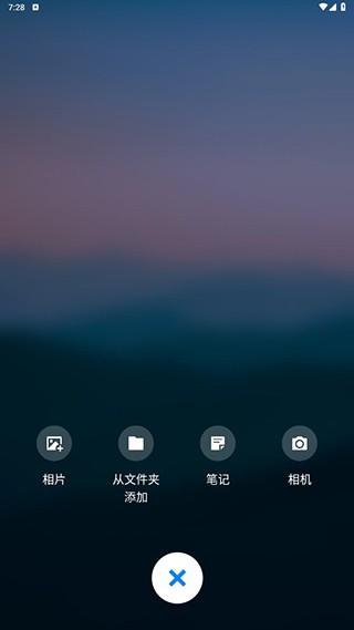 用户点击下方加号,即可使用相片、文件、笔记、相机功能。