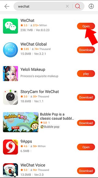 3、之后就可以看到我们已经搜索到wechat(微信)了,之后我们点击安装即可。