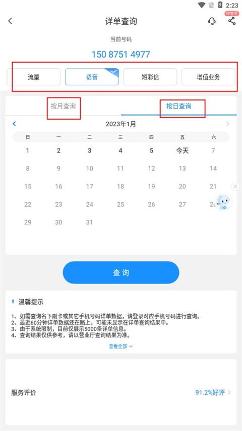 1、手机电话费用使用查询数据准确,办理业务快捷方便一键办理。