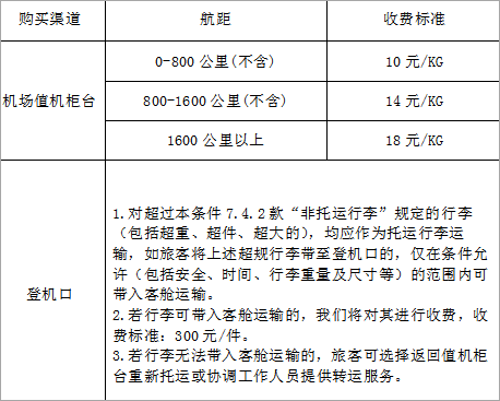 2、您的托运行李或非托运行李超过免费行李额的部分,被称为逾重行李,您需为超过部分支付逾重行李费;