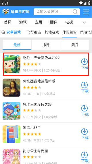 4、如果用户有所想下载的目标软件或游戏,我们可在上方输入关键字快速的检索。