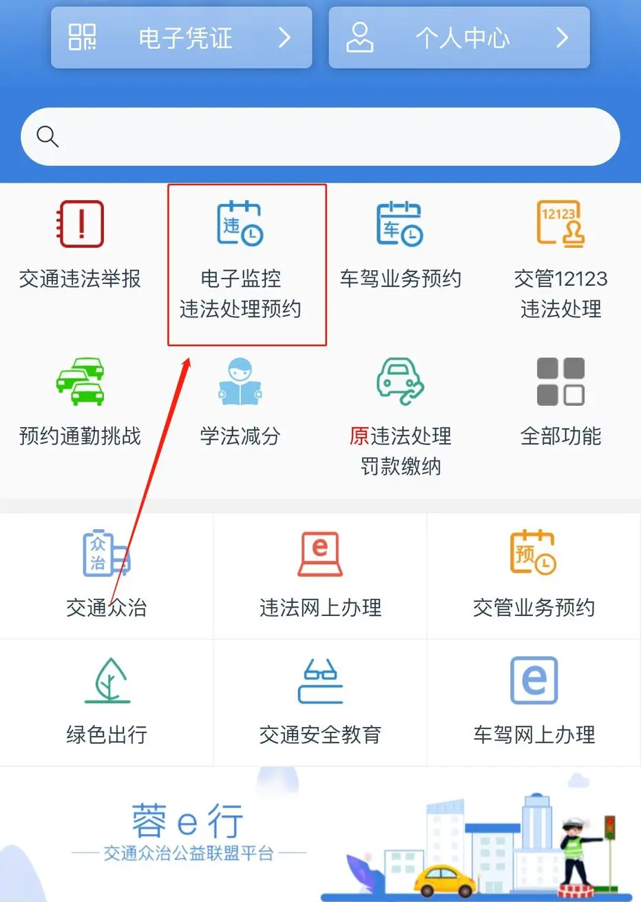 1、在蓉e行中,点击“电子监控违法处理预约”。