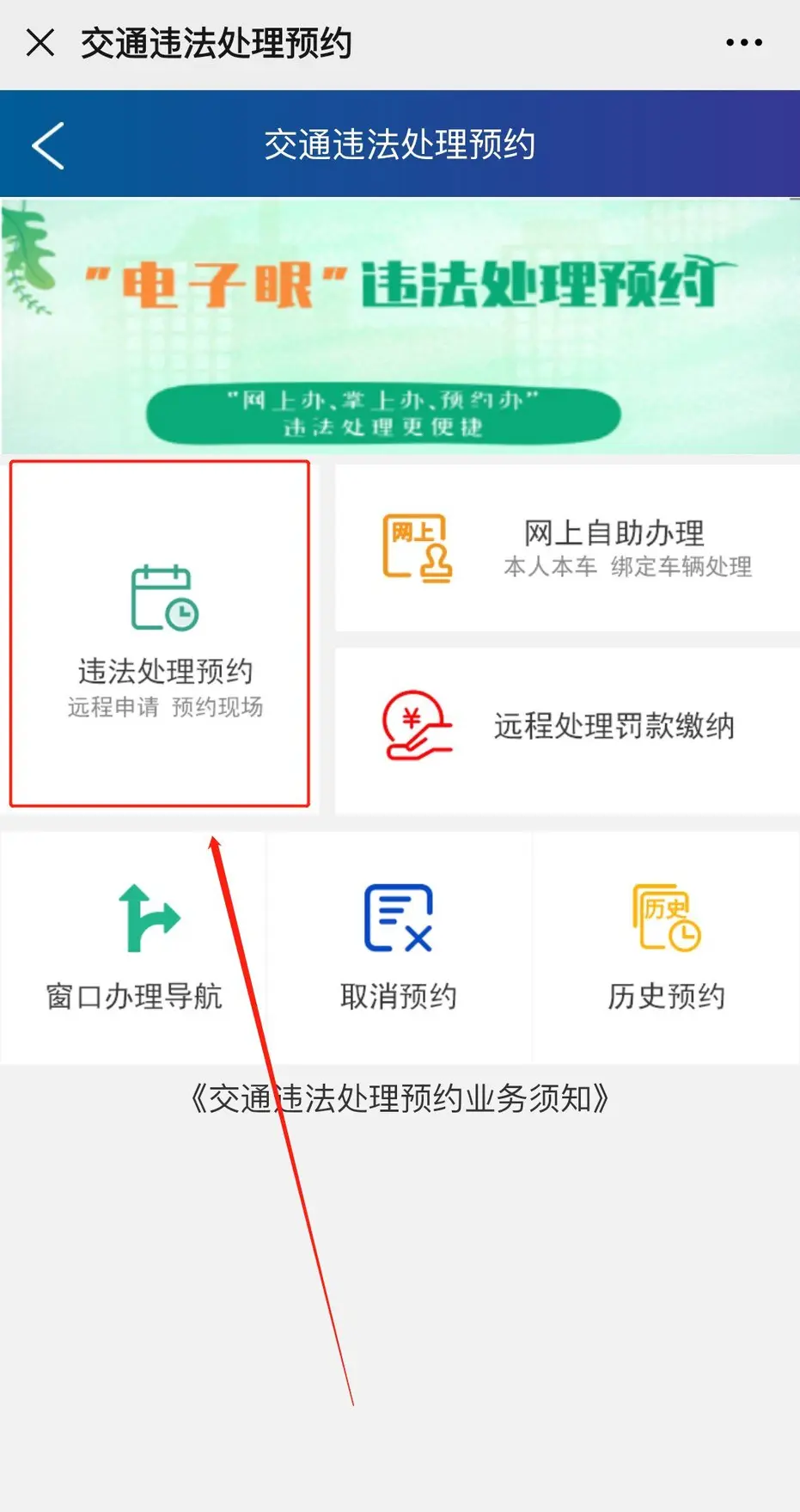2、在转界面中点击“违法处理预约”。