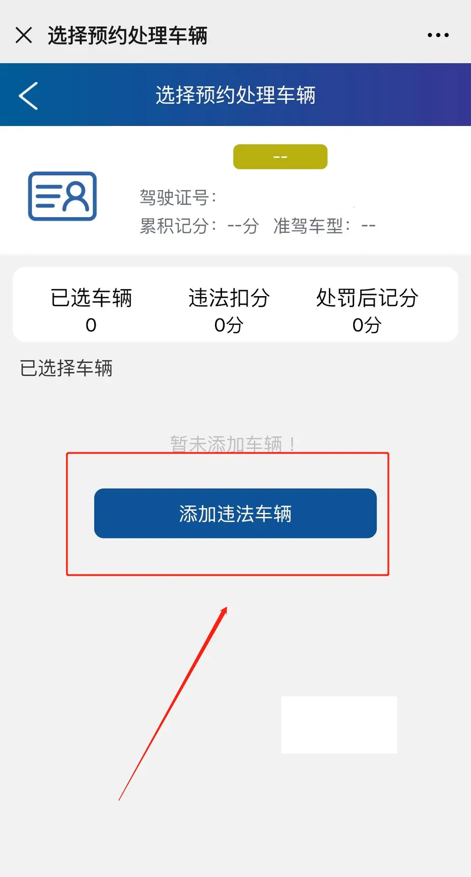 3、在跳转页面中点击“添加违法车辆”添加完成后。