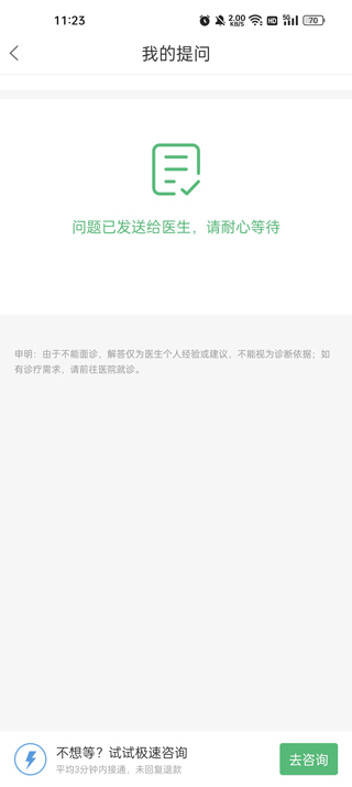 快速问医生app中你可以在办公室里,在家里,有什么不舒服的地方都可以通过快速问医生一键问询专业的医生,医生用户下载注册登录就可以在平台上进行在线问诊,通过app还可以记录病人的信息,尽其所能为患者解答,医生更专业,并使用带有健康提示,提供最迅速,这样可以直接与病人轻松沟通,快速问医生非常实用!